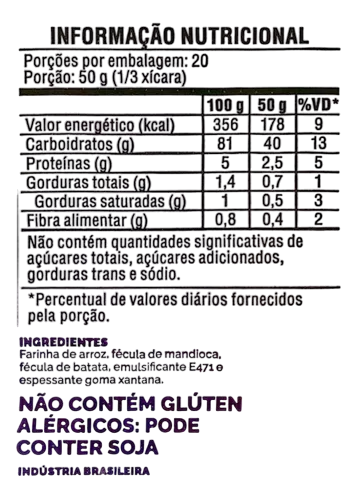 MIX DE FARINHA SEM GLÚTEN ESPECIAL URBANO – Receitas. Composição: FARINHA DE ARROZ, FÉCULA DE MANDIOCA, FÉCULA DE BATATA. Mix de farinhas selecionadas, desenvolvido especialmente para quem busca uma alimentação livre de glúten sem abrir mão da qualidade e sabor nas receitas. Indicada para o preparo de pães, bolos, tortas, panquecas e massas em geral, essa farinha é uma alternativa prática e saudável à farinha de trigo tradicional. Com excelente desempenho culinário, proporciona textura leve e macia, sendo perfeita para receitas doces ou salgadas. Livre de glúten, é indicada para celíacos, intolerantes ao glúten ou pessoas que seguem dietas restritivas